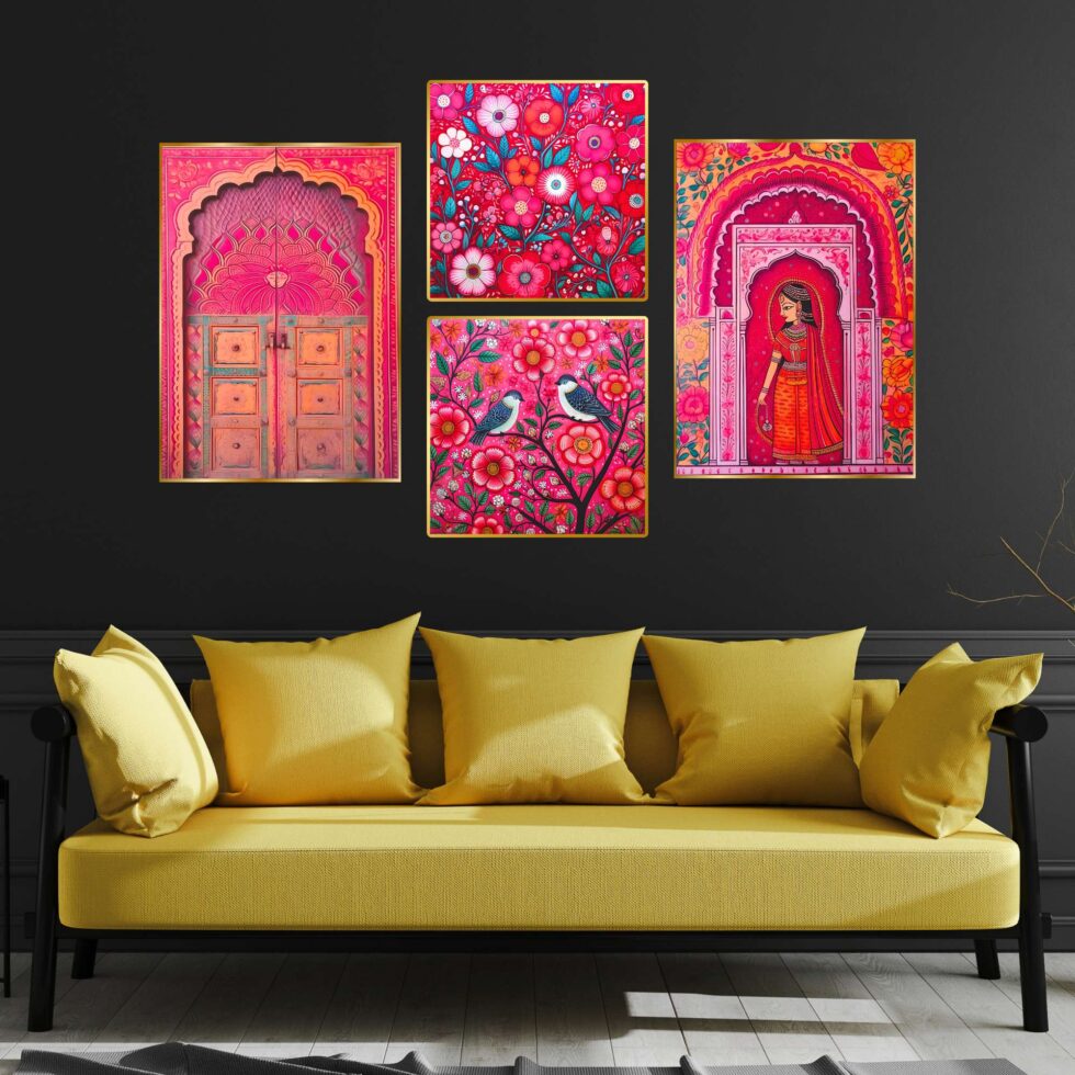 wall paintings, designed to elevate any room with their vibrant traditional charm. Perfect for a variety of settings, these intricate pieces are ideal for wall decor, whether you’re seeking artwork for your living room or bedroom. Our collection includes bold and large wall paintings that create a striking focal point, especially as big wall paintings for the living room. paintings are perfect for home decoration, seamlessly fitting into any space as wall art for living rooms or framed wall paintings for bedrooms. Whether you choose wall paintings with frames for the living room or bedroom, these pieces add an elegant, cohesive touch to your decor. Beyond living areas, these paintings also make beautiful kitchen wall decor and versatile wall hanging options. Enhance your living room wall decor with framed wall art that complements any style. Choose from various formats, including wall paintings golden frame,allowing you to customize your space with ease. Each painting blends traditional and abstract styles, offering both framed wall paintings and wall art decor that fit effortlessly into any room. Explore the beauty of art and bring a touch of culture and sophistication to your home with these exquisite wall paintings for decoration.